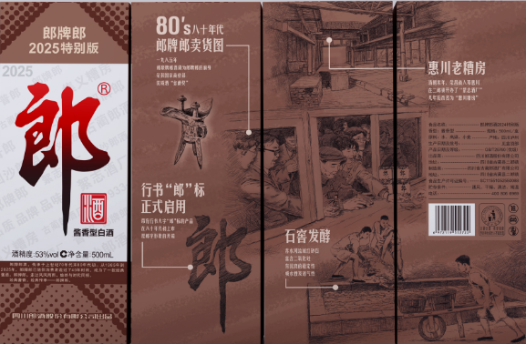 此次郎牌郎2025特别版,首先在核心标识上坚守经典,让老粉丝一眼便能找回熟悉的“郎酒味道”。产品包装延续了郎牌郎的专属视觉符号,以醒目的“郎标”作为品牌核心印记。