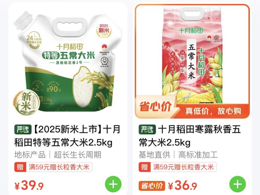 十月稻田以大米为核心优势品类,本次获奖的特等五常大米为十月稻田与小象超市合作的渠道专供产品,2.5kg小规格精准匹配单身及小家庭需求,这背后是品牌对“一人食”趋势的精准洞察和即时零售渠道的前瞻布局。