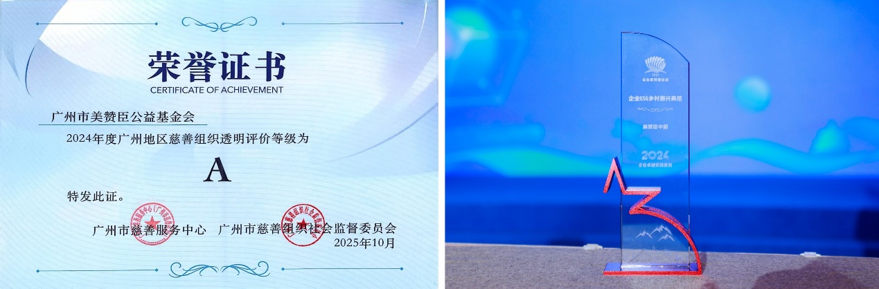 五年来,基金会视公信力建设为发展基石,凭借规范运作连续三年荣获广州地区慈善组织透明度A级评价,并荣获2024企业ESG乡村振兴优秀案例、2024慈善大典“年度榜样基金会”称号、“慈善捐赠四星社会组织”称号等多项荣誉,为基金会的可持续发展奠定坚实基础。这些成绩既是过去五年公益实践的重要肯定,也是对“阳光慈善”理念的高度认可。