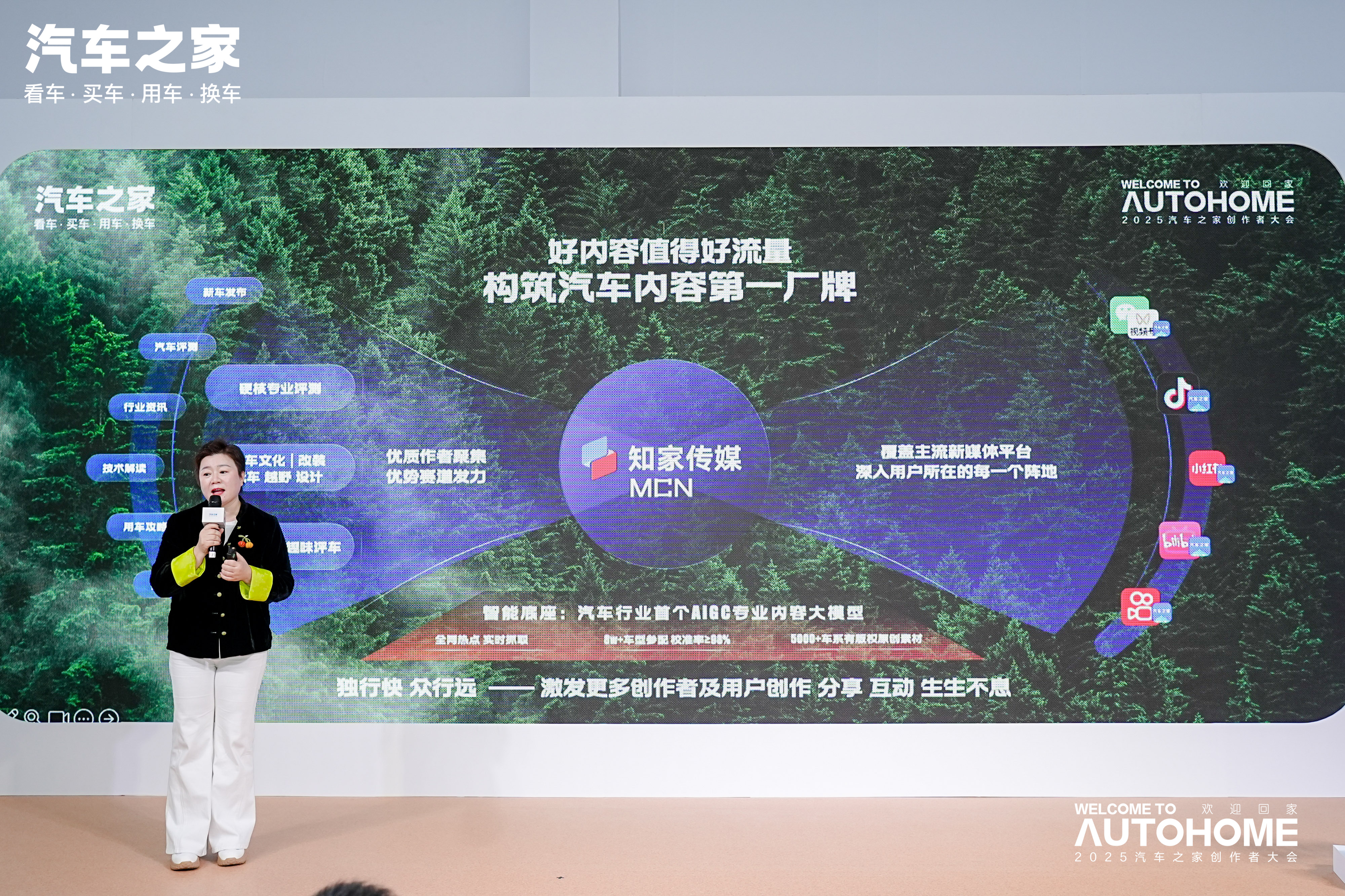 会上,汽车之家总裁王秋凤正式发布汽车之家内容生态升级与拓展战略,致力于构建“中国最大的内容服务平台”。在平台内部,战略聚焦于强化赋能体系,核心举措包括打造汽车内容领域领军厂牌——知家传媒MCN,并推出“知家万象”平台。该平台致力于成为高效的内容连接枢纽,计划于12月上线“内容广场”,提供涵盖IP、达人及营销资源的一站式解决方案;同步设立“趋势中心”,实时追踪行业热点;实现品牌与达人之间的“自主下单”及线上履约机制;并通过打通站内外数据体系,量化内容创作价值。此外,平台还将推出汽车专业AIGC大模型,依托海量车型数据与素材资源,为创作者在内容生成与分发环节提供全链路效率支持。