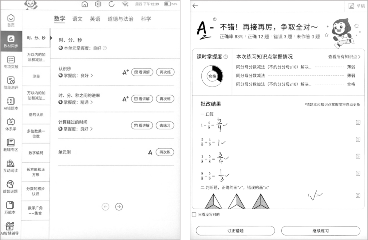 “掌握度”的意义远不止于评估学习效果,它更是驱动有效练习的“中枢”。小猿学练机S6将这一模型深度应用于“练”的全流程,希望从根本上转变盲目低效的“题海战术”模式。