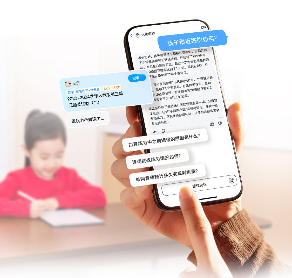 在这一体系下,S6为家长量身定制的AI老师“优优”,承担起“学情规划师”的职责。它会全面跟踪孩子的学习动态并实时同步,家长也可以通过自然对话随时询问细节,如“孩子练习有哪些薄弱点?怎么解决他的薄弱点问题?”,“优优”老师基于掌握度给出具体分析,并提供阶段性的规划建议。