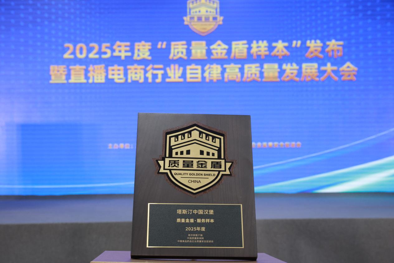 12月12日,在2025中国食品药品质量安全大会上,2025年度 “质量金盾·服务样本”名单正式揭晓。塔斯汀凭借在质量管理体系建设、核心技术创新、服务品质提升、全链条安全管控等方面的表现,斩获2025年度“质量金盾·服务样本”奖。