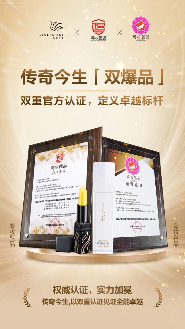 国货美妆品质进阶:传奇今生两款产品分获“粤妆甄品”“粤妆名品”认证