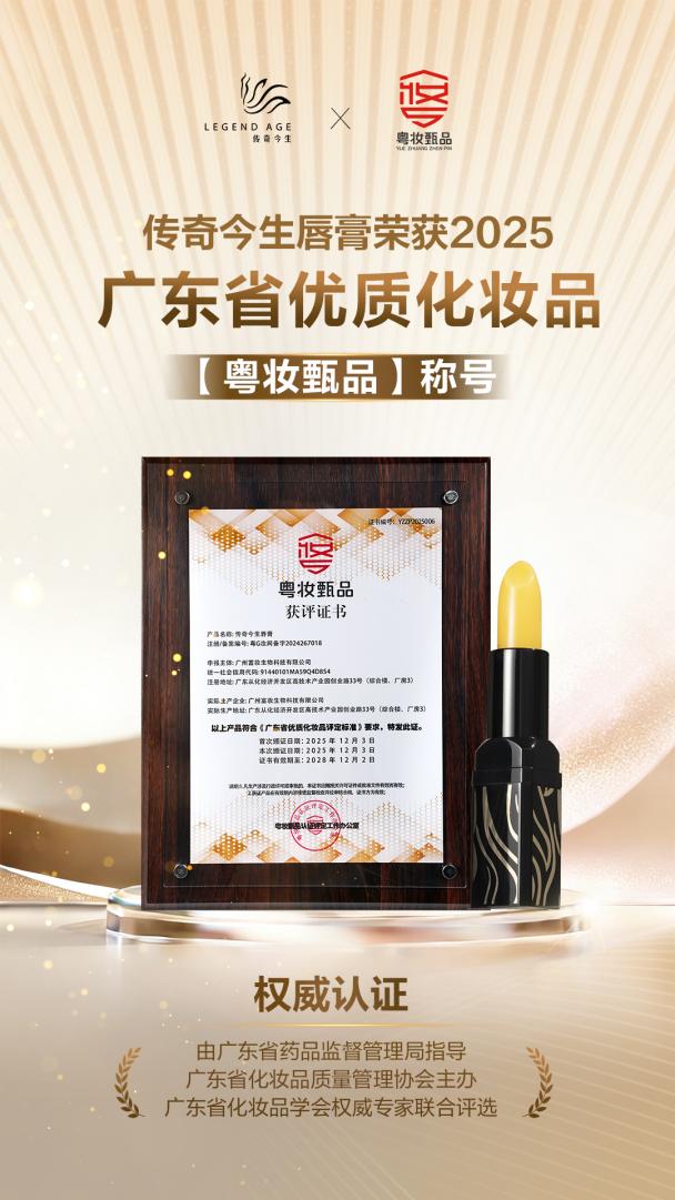 广州,2025年12月——在国货美妆市场竞争日趋激烈的背景下,产品质量与市场声誉成为品牌发展的核心基石。近日,国货品牌传奇今生旗下两款标志性产品——传奇今生唇膏与花漾精华乳,分别通过了广东省“粤妆甄品”与“粤妆名品”认证。该品牌成为少数同时在此两类评价体系中获得认可的企业之一,显示出其在产品安全管控与市场综合竞争力上已达到区域性行业标杆水平。