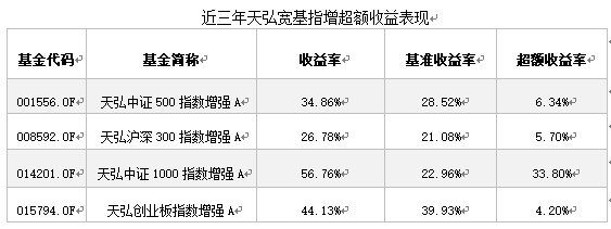 截至12月2日,天弘基金旗下共有四只宽基指数增强产品运作满三年。2022年初成立的中证1000指增表现尤为突出,根据基金定期报告,截止2025年三季度末,近三年基金相对业绩比较基准(中证1000指数收益率×95%+银行活期存款利率(税后)×5%)超额达到33.80%。