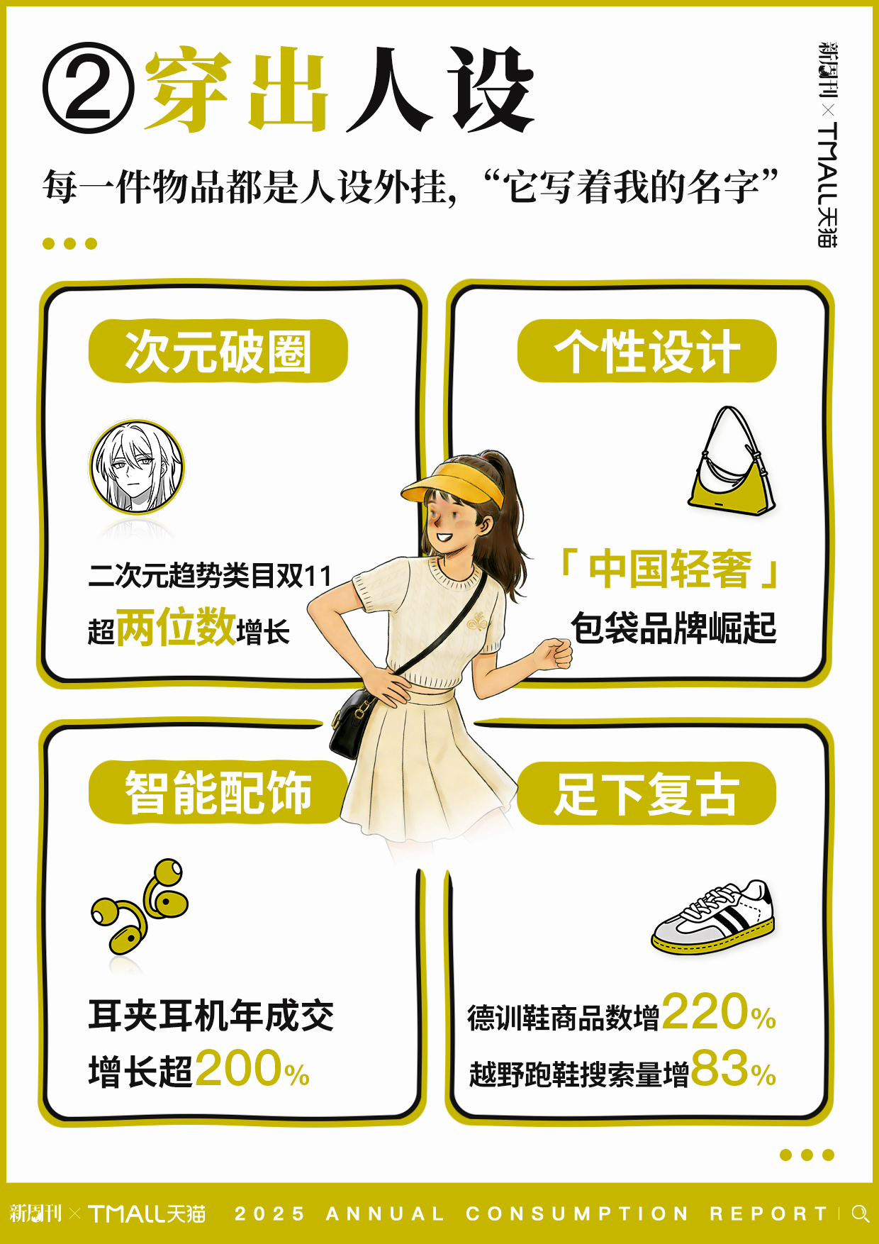 2025年,年轻人的消费逻辑里,“不同”比“认同”更重要。他们通过消费彰显独特的审美,耳夹耳机、设计师包袋、复古薄底鞋……每个单品都要“写着自己的名字”。