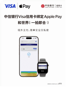 中信银行支持消费者将Visa卡绑定Apple Pay 境外支付更便捷、更安全