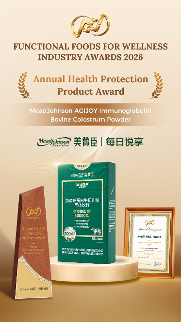 在美赞臣中国“婴幼儿+儿童成人”双轮驱动战略布局中,不仅关注儿童成长,也致力于为中老年群体提供科学营养守护。旗下成人营养品牌“每日悦享”,依托百年科研积淀,以精准科学配方,回应中老年人群的健康需求,守护家人的健康。该系列旗下产品免疫球蛋白牛初乳粉固体饮料在2026年亚太功能食品健康峰会(FFWS 2026)中获“年度保护力健康大奖”,备受行业认可。