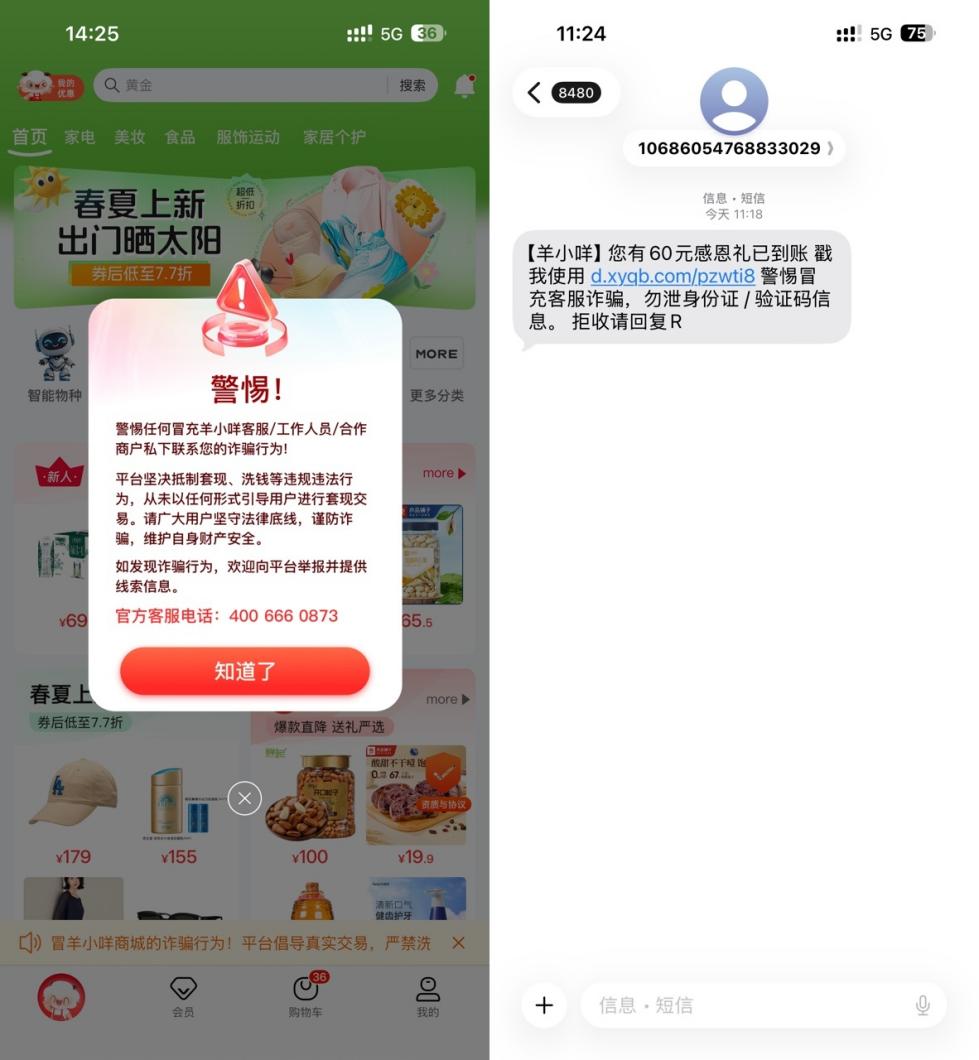 一是主动提醒:羊小咩APP首页已设置防诈弹窗提醒,并对新注册用户实施短信提醒和客服主动电话触达机制,重点提醒防范冒充平台客服回收套现的诈骗行为。