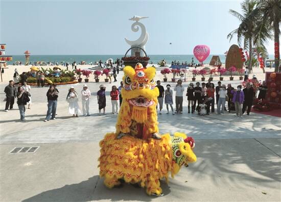 在这个春节,海陵岛依然是当仁不让的主角。今年的海陵岛,有了“热闹喧嚣”与“宁静悠然”的两幅面貌。踏入螺洲海滨公园,迎春花市上紫红、明黄的鲜花与年桔摆得整整齐齐。从大年初一到初四,铿锵的锣鼓声中,醒狮腾跃,“狮子采青”“踏高”“醉酒”等经典环节引得围观游客阵阵喝彩。每晚9时,璀璨的烟花秀在夜空绽放,将海岛的新春氛围拉满。