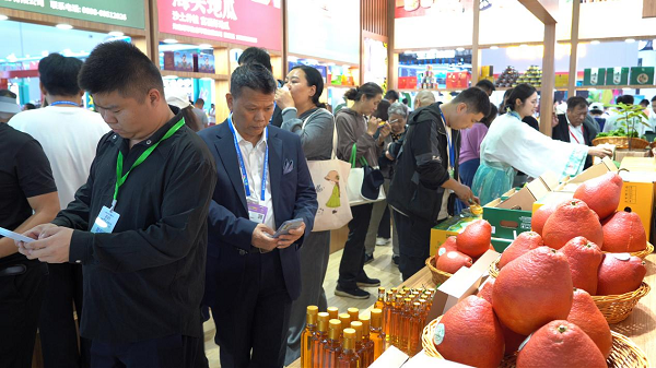 来自广东的水果采购商王宏,在红宝石香柚展台前仔细询问,并现场添加了联系方式。“做了十几年水果生意,头一回见通体红色的柚子,颜值很有差异化,不管是进高端商超还是做礼盒定制,应该都很有市场。”王宏表示,打算后续等果子产量稳定些,就去儋州的种植基地实地看看,争取达成长期合作。