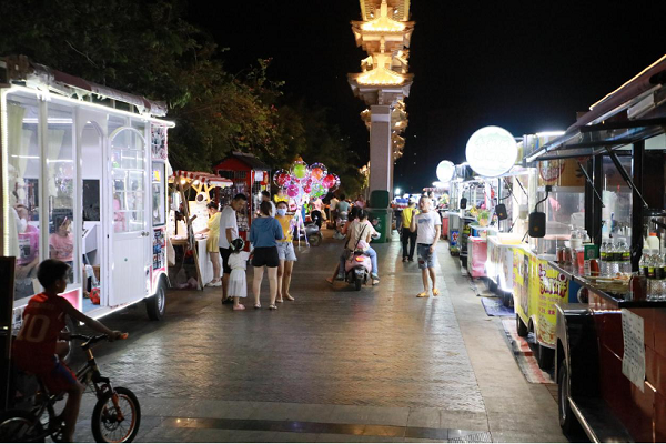 目前,临高已在方圆公园、文澜文化公园、富罗广场等地培育了多个规范化夜市,集聚市场主体超过150家,以特色餐饮、小吃为主力业态。据统计,夜市旺季单日销售额可达近7万元,全年总销售额突破1000万元,正成为拉动县域经济增长的新引擎。
