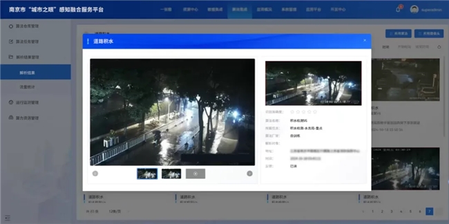 在台风、暴雨等极端天气应对中,通过融合大模型的联通格物平台整合气象数据、传感器监测与视频画面,并进行多模态融合分析,实时生成积水点热力图与疏散路径规划。在台风”贝碧嘉”期间,系统产生的74个积水事件告警,分别推送至市水务局、市建委、玄武区城运、栖霞区城运等相关部门,均被相关部门采纳,处置时间平均缩短40%。