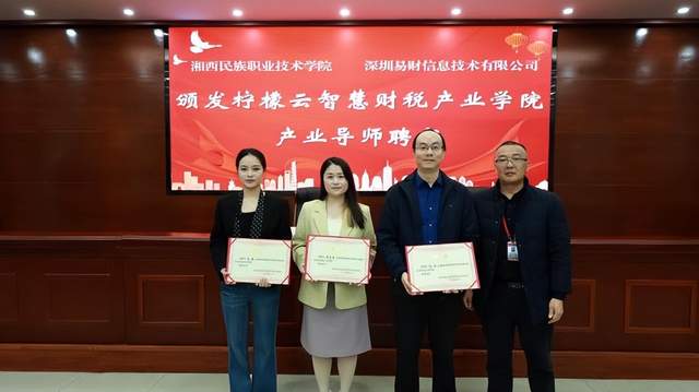 11月3日上午,湘西民族职业技术学院与深圳易财信息技术有限公司共建的“柠檬云智慧财税产业学院”签约仪式在学校D区报告厅举行。仪式以“同心筑梦,共赢数智财经新时代”为主题,标志着校企双方在深化产教融合、共育智慧财税人才方面迈出关键一步。学校党委书记谢绍猛,党委委员、副校长吴娟,党委委员、副校长黄毅,深圳易财信息技术有限公司董事长刘刚,经济贸易学院师生代表共同出席活动。仪式由经济贸易学院党支部书记钟伟主持。